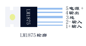 它为TO-220封装,1脚‘+’输入,2脚‘-’输入,3脚‘地’,4脚‘输出’,5脚电源‘+’。